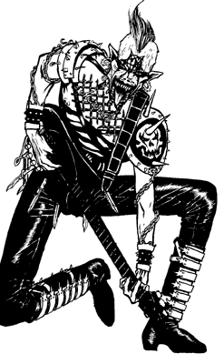 Ibanez bass, lots of leather and spikes and things,