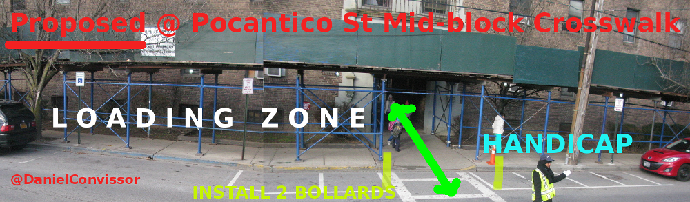 These are images of the mid-block crosswalk on Pocantico St between the Van Tassel Apartments (in the background) and Morse School in Sleepy Hollow, NY.