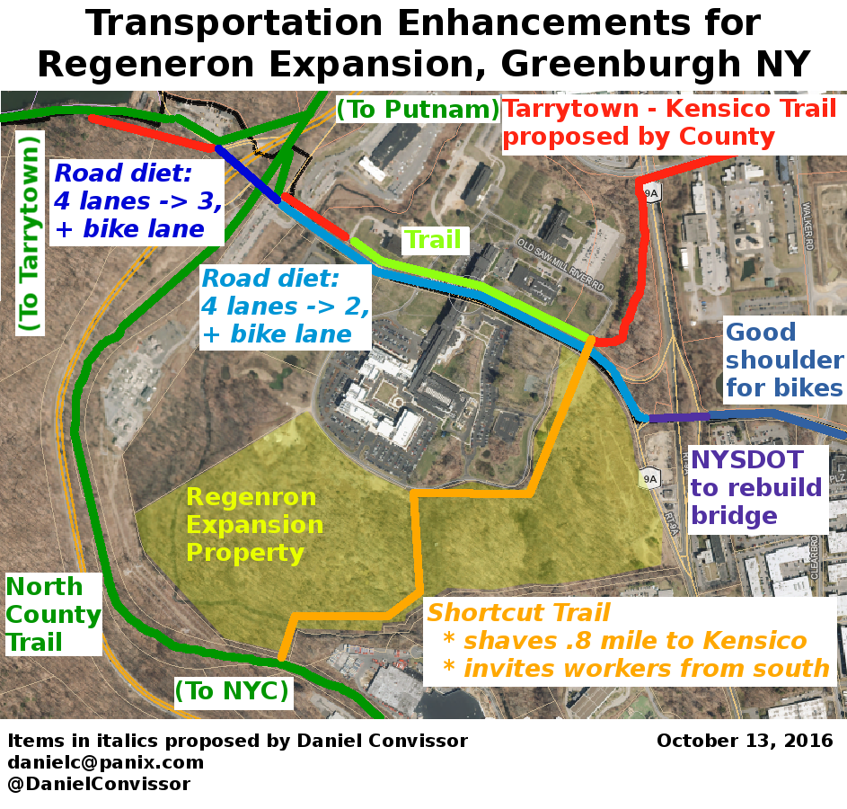 I'm following up on my tweet to you about transportation improvements for the Regeron expansion https://twitter.com/danielconvissor/status/786787075886616576 and my July 19 email to you about resurfacing and reorganizing Old Saw Mill River Rd.