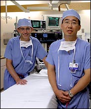 Dr. Heung Bae Kim, right, developed the technique that he and Dr. Tom Jaksic used to operate on Alex's intestine.