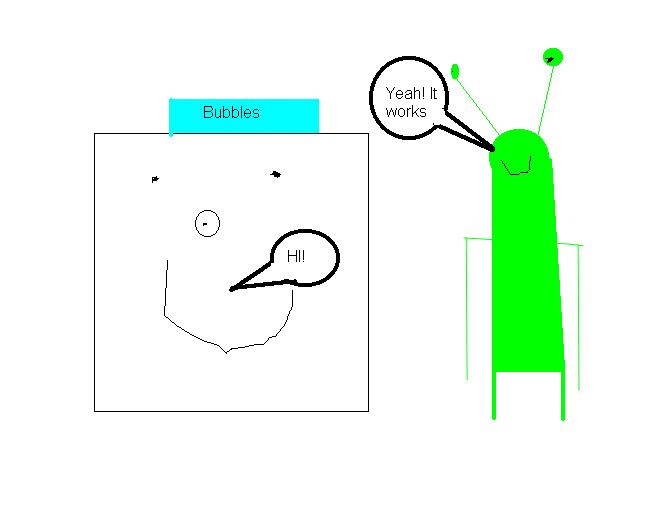 Once some aliens built a robot. It looked sort of like Super circle only it was a square. The square’s name was Mega square. "HI" shouted Mega square. "Yeah it works" said an alien.
