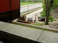 There's an access road to the basement level at one corner, which