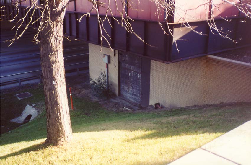 Another view of the area between the sidewalk and the restaurant building, where the outdoor terrace would have been. The "bridge" to the entrance is out of the frame to the right.