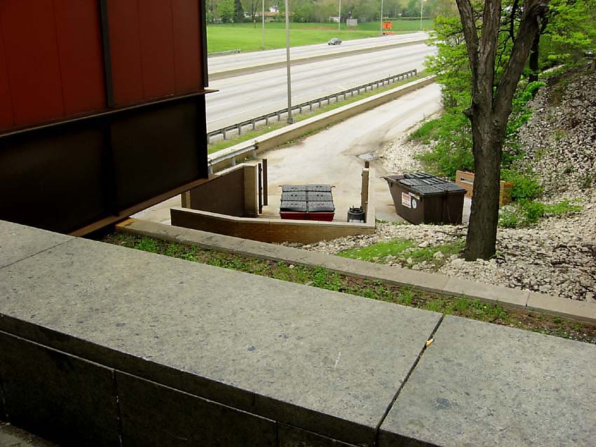 There's an access road to the basement level at one corner, which is where they store the trash.
