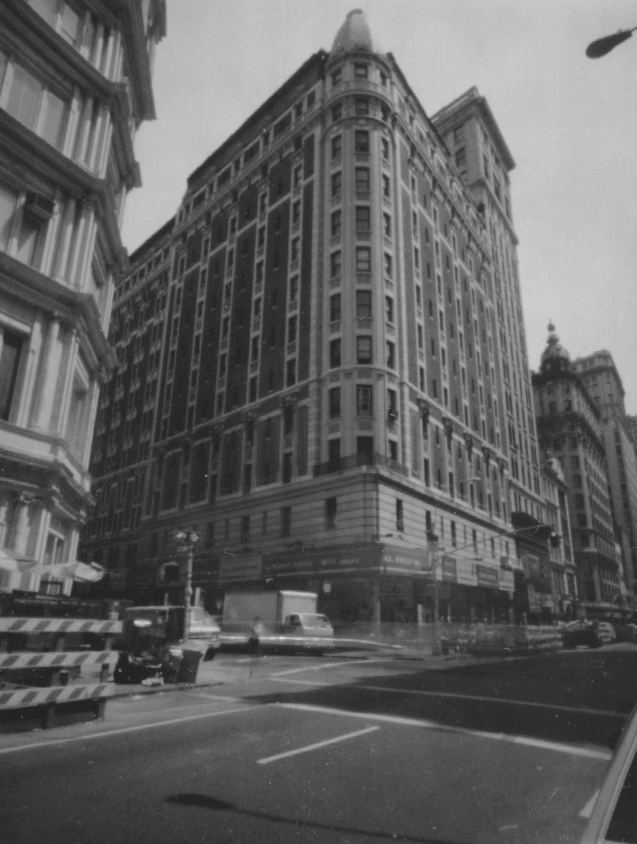 (189KB) 00:04 on Polaroid Type 54 film This building is on Broadway south of Herald Square. I love the older buildings with their ornate rounded corners.