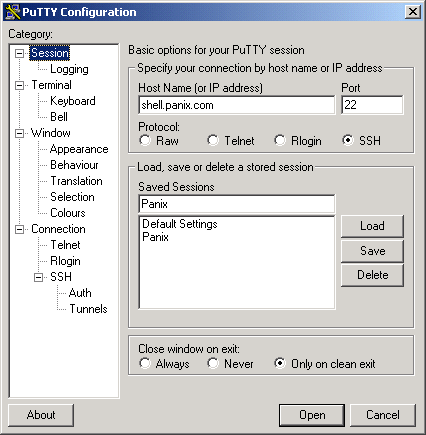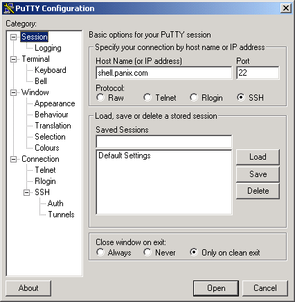 PuTTY is a powerful SSH/telnet program used to access your Panix shell account. The following instructions will show you how to configure PuTTY to connect to Panix.