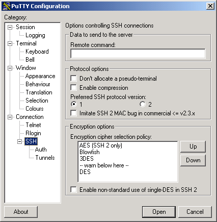 PuTTY is extremely flexible. Essentially, anything not mentioned here can be tweaked at your leisure by clicking the various 'Category' headings on the left-side panel. This contains options for window size, font, specific keyboard settings, ability to setup SSH tunnels for other services, etc. PuTTY's homepage has a wonderful help section that describes each option at www.chiark.greenend.org.uk/~sgtatham/putty/docs.html
