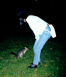 possum's tail right behind my leg at