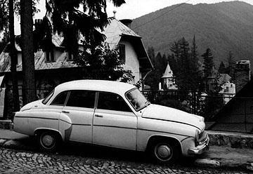 A car overlooking typical Romanian houses