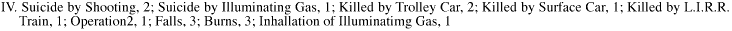| Suicide | 3 | 3 | 0 | 0 | 3 | 0 | 0 | 0 | 0 | 0 | 1 | 0 | 2 | 3 | 0 | Other Violent Causes | 11 | 7 | 4 | 6 | 5 | 0 | 1 | 1 | 1 | 0 | 7 | 1 | 0 | 10 | 6 |
