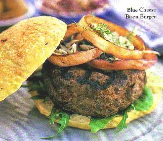 Remove the burgers from the heat to a platter, and flip the onions. Season the burgers with more salt and pepper, place them on toasted buns, and top with a few slices of grilled onion, some blue cheese and arugula leaves.