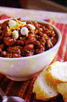 Cook the salt pork until golden brown. Remove salt pork with slotted spoon and set aside. Add diced meat to pan and quickly brown all sides, remove meat from pat and set aside. In same pot add onions, peppers, garlic, and jalapeño and sauté until tender, adding oil if necessary. Add chili powder, cumin, coriander and red pepper flakes, stir to mix. Add beer and tequilla to pot with vegetables and spices and reduce liquid by half. Add diced tomatoes and tomato purée to pan, bring to boil, reduce heat and add the cooked meat and simmer with a lid on for 1 hour, stirring occasionally. Remove lid from pot, add beans, and simmer for an additional 30 to 60 minutes or until meat is tender. Add browned salt pork and adjust seasonings.
