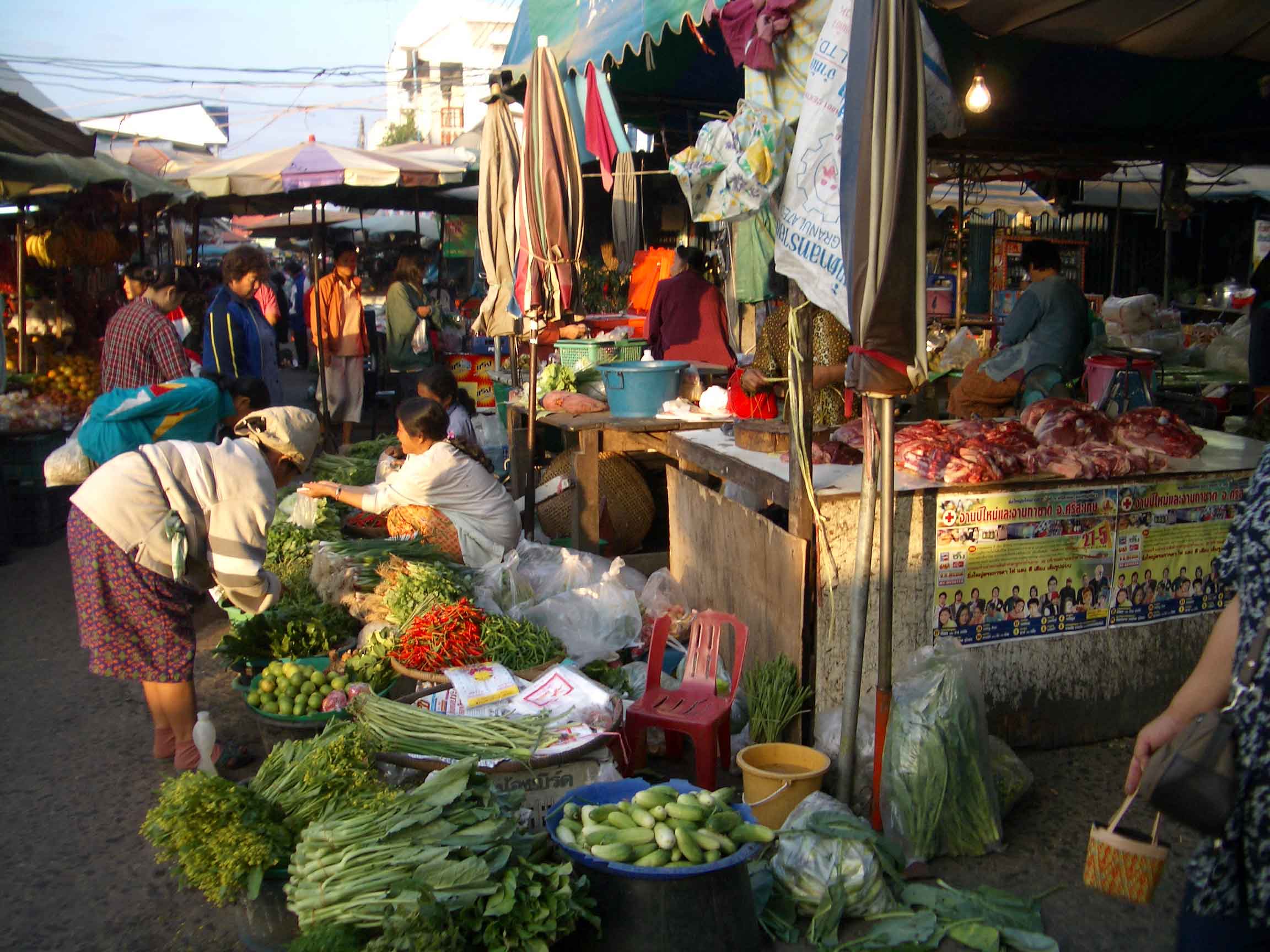 |  The morning market in Uthumphon Phisai, Sisaket, Dec 2004