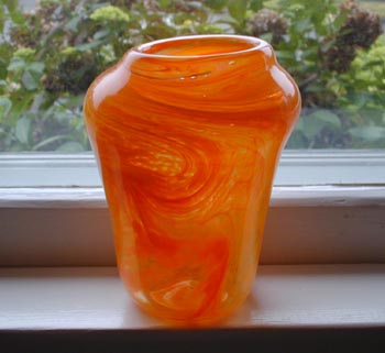 the ticket) swirly and curlicued orange and yellow vase. As of