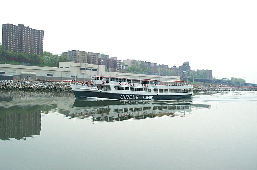 The Bronx waterfront and a waterborne passer-by, seen from the southern end of the Harlem River Drive.