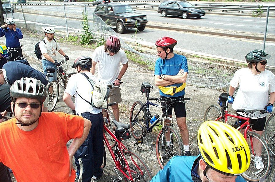 At the bottom of the highway ramp on the Harlem River Drive. This area was once a favorite place for car thieves to dump stripped auto bodies. The only obstacle here now is a sea of broken glass - apparently tossed from the cars of passing motorists. Most pedestrian overpasses these days are fenced in to keep people from tossing things at the drivers - but how do you stop drivers from tossing things onto the Greenway?