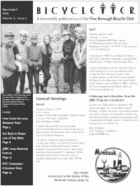 In this issue, there is coverage of a 5BBC General Meeting presentation by the NYC Parks Department's Jennifer Hoppa on the City's successes in building the Greenway system. Your positive response to Jennifer, and the 8th Avenue Bike Lane discussion led me to plan an article on a whole list of related subjects. That includes improved bridge access and repairs, a look at both sides of how to ease the Critical Mass dispute before we find ourselves applying for City permits for 5BBC day rides, and website links and other resources on how to get involved for those who choose to.