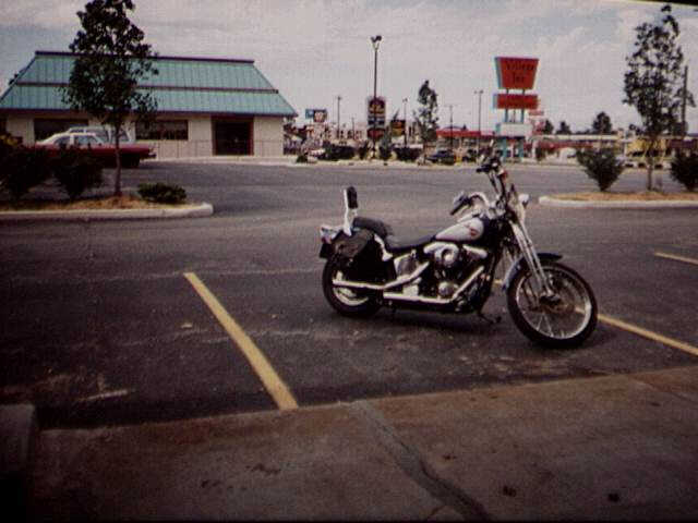 Arrived at Chick's HD around 3:30pm and dropped the bike off. Then got a room at a nearby HoJo Inn. Made a few phone calls and went out and picked up a six pack. Then I received a call back from Donnie Frank from the Harley-Digest mailing list. He was picking his bike up from Chick's and said he'd stop by the room. A little while later I received a call from Dennis Hargrave from the Brit-Iron mailing list. While on the phone with Donnie showed up. It was a blast meeting someone who I had only known from the 'net in person! Donnie had band rehearsal that evening but called one of his roommates, 99 and asked if he could come and get me out of the room for a spell, since I was stranded with my bike in the shop.