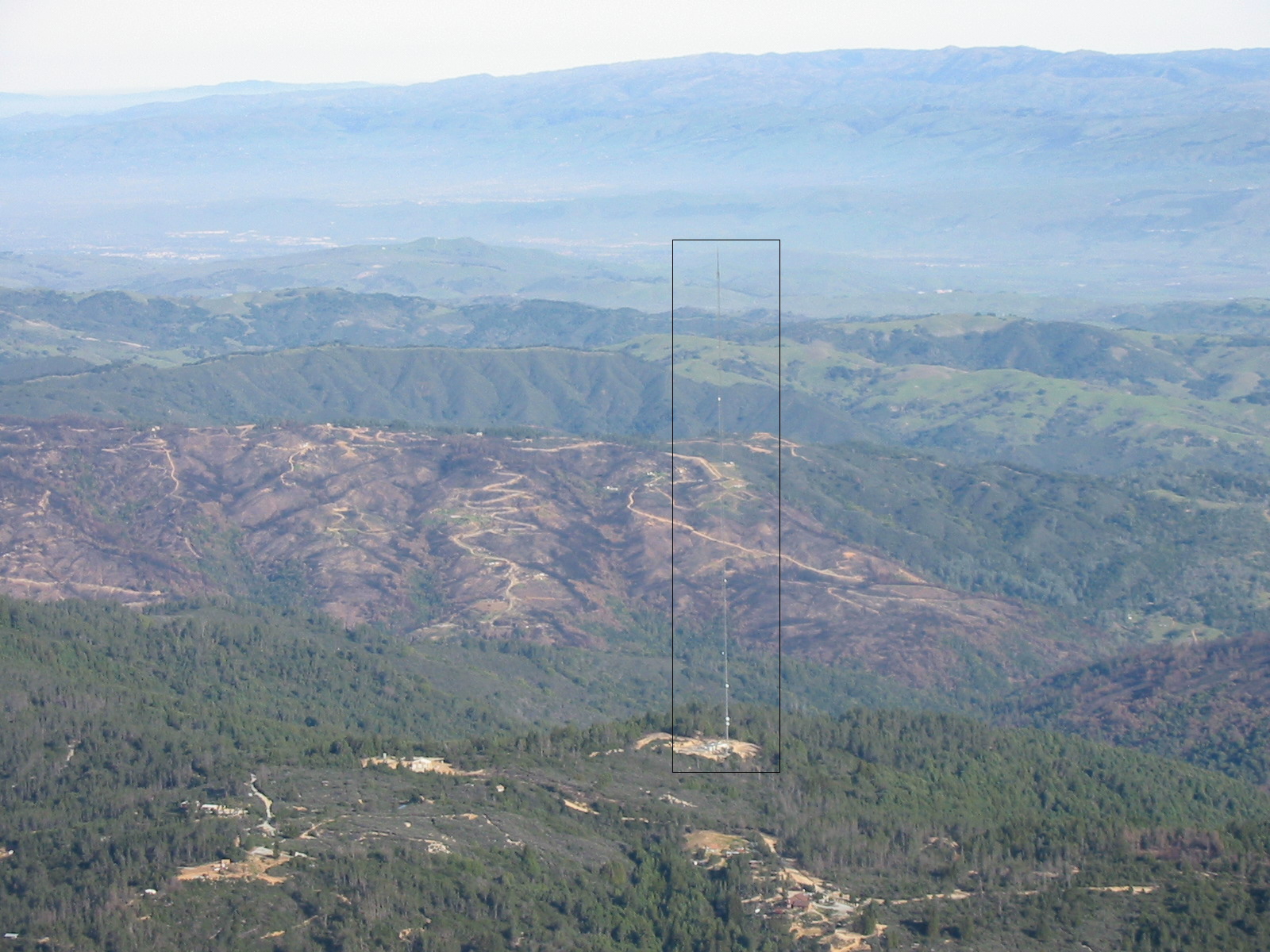 The top of the tower is just below the top of the rectangle.