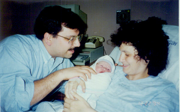 Andrew and Jesse in the delivery room moments after Andrew's birth.