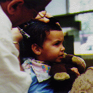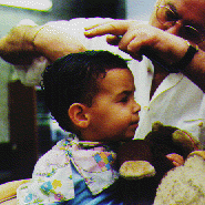 Daniel had his hair cut for the first time on June 17, 1995. He watched the whole process in the mirror with the most serious expression. Clearly it was a more traumatic passage for his parents than for him!