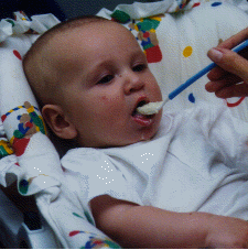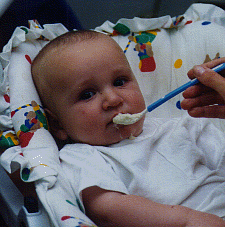 Andrew ate his first "solid" food on June 19, 1995. He took to it with gusto, which came as a bit of a surprise to his parents.