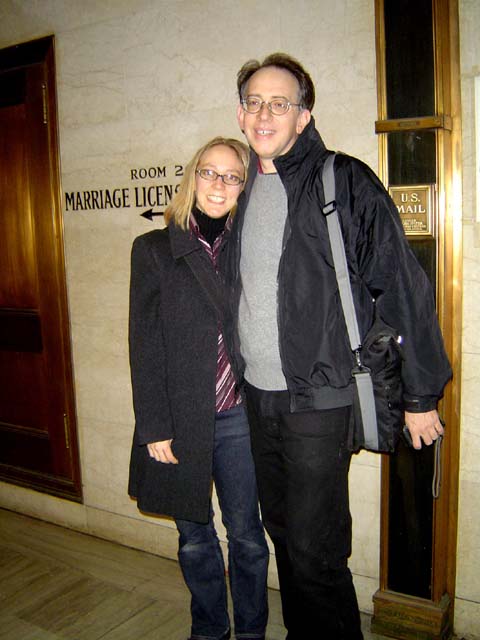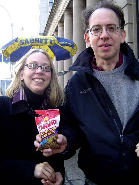 Outside, with some sunflowers Debra provided to be tossed on our heads.