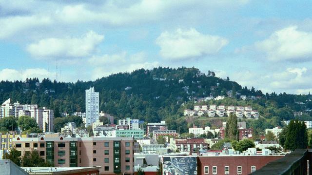 | Flowers in Jack Ball's Garden | Portland Skyline | Portland Skyline | Me on the Roof of the Mark Spencer Hotel |