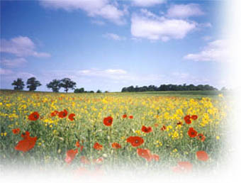 sunny afternoon in an unlit office with a green field for animals just a yard