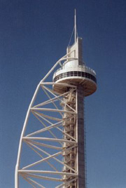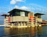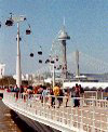Oceanario and the Torre are connected by a wide boardwalk and a dual string of