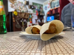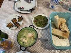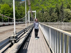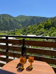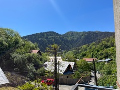We've had some really good food in Borjomi. We tried to go to a restaurant for dinner last night that has really good reviews online. It was very small and all the tables were full. After we left one of the diners chased us down and told us the restaurant is very good so we should try to come back later in the night. So we knew we would have to go back if people like it that much! We were too hungry so we went somewhere else for dinner and went back to that restaurant for lunch. It was indeed very good! We had a traditional chicken and cilantro egg drop soup, eggplant walnut rolls, spinach and walnut, and kebabs in flatbread. The earliest archaeological evidence of wine was found in Georgia so of course we had to try some of the unique wines they make here. We got an "amber" wine where they leave the skins of the grapes on for part of the process. It was also made in "qvevri" clay jugs instead of wooden barrels. I dont know enough about wine so I can't taste the difference! We have a very nice balcony at the airbnb with a beautiful view. |