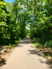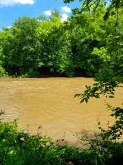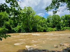 Grace and I took a walk today in Riverview Park, along the Rivanna River. You can see that the river is swollen from all the rain. I couldn't see a high water mark anywhere so this is probably as high as the water has been in quite a while. |