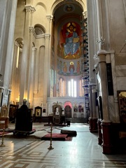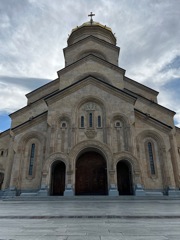 One of the benefits of our current sleep schedule is arriving at the tourist sites before anyone else. The downside is arriving before they're open. We went to the big cathedral of Tbilisi, the Holy Trinity Cathedral and walked around the perimeter for a little bit until it opened. I think it was visible in some of the pics I sent, it is pretty large and has a gold roof. The cathedral grounds had a lovely garden that we strolled around. Inside were many images of Mary and Christ, saints, and important figures from Georgian history. Inside was one other pair of tourists and a few locals who came to light candles in front of certain images. An old man saw us and showed us a small side door that lead to the underground chapel. Hospitality is a big part of the culture and Georgians are very eager to tell us about Georgia and Georgian culture even with the language barrier. |