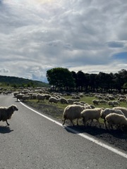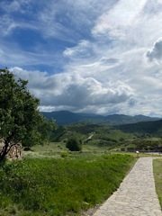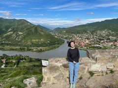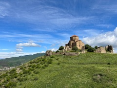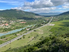 After the cathedral, we took a taxi about 30 minutes north to Mtskheta, which used to be the capital city. We went to Jvari Monastery, which is on a hill overlooking the city and the convergence of two rivers. On the way there we encountered some rush hour traffic, see attached photo. The view from the monastery was beautiful. Just like with the cathedral, it was almost empty with only a few other people. On the way back down, we passed many other cars on the way up so we came at the perfect time to have it almost all to ourselves. After the monastery, we went to the mall which has a large grocery store attached. The grocery stores near the Airbnb are more convenience stores so it was cool to see a big grocery store. We got a few odds and ends at the grocery store like cheese, ham which is a specialty of a western region in Georgia, and some cookies. After the mall we got lunch, which was very good. Georgian food has mastered the simple preparation of high quality ingredients. We had kebabs and grilled beef along with some potatoes and a large salad. Back at the Airbnb we stopped by a cafe that makes an old traditional Georgian sweet that is hard to find these days. It's walnut paste dipped in caramel. |