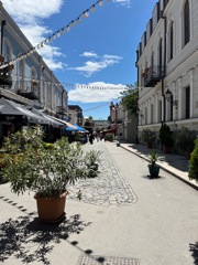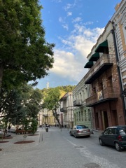 We saw most of the sights we wanted to see in Tbilisi so yesterday we had a slower day. We tried a popular cafe that serves mineral water with flavored syrup. Most of the water here is mineral water and a lot of the brands are towns that we will see later in the trip! Some of them have a really minerally flavor and other brands taste like regular water. The water comes from mountain springs in the towns they're named after. Today we're going to Borjomi, which is where Buster's favorite mineral water comes from and one of the reasons we got the idea to come to Georgia. It has a very minerally and even salty flavor and I don't like it very much. People drink it here for health and they used to go to Borjomi to drink the water and bathe in the mineral pools for the same reason. Before we left, we saw a Faberge egg in the Met commemorating a town in the same region where the Tsars went during the summer. We also went up the cable cars to the top of the big hill next to the city. It has been visible in some of my pictures, there is a large white building and a TV tower on top of the hill. From the cable car we could see the church we went to the other day. At the top we went on a Ferris wheel and saw a beautiful view of the city. |