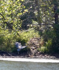 I was standing by the beaver pond  and I saw a heron flying across toward