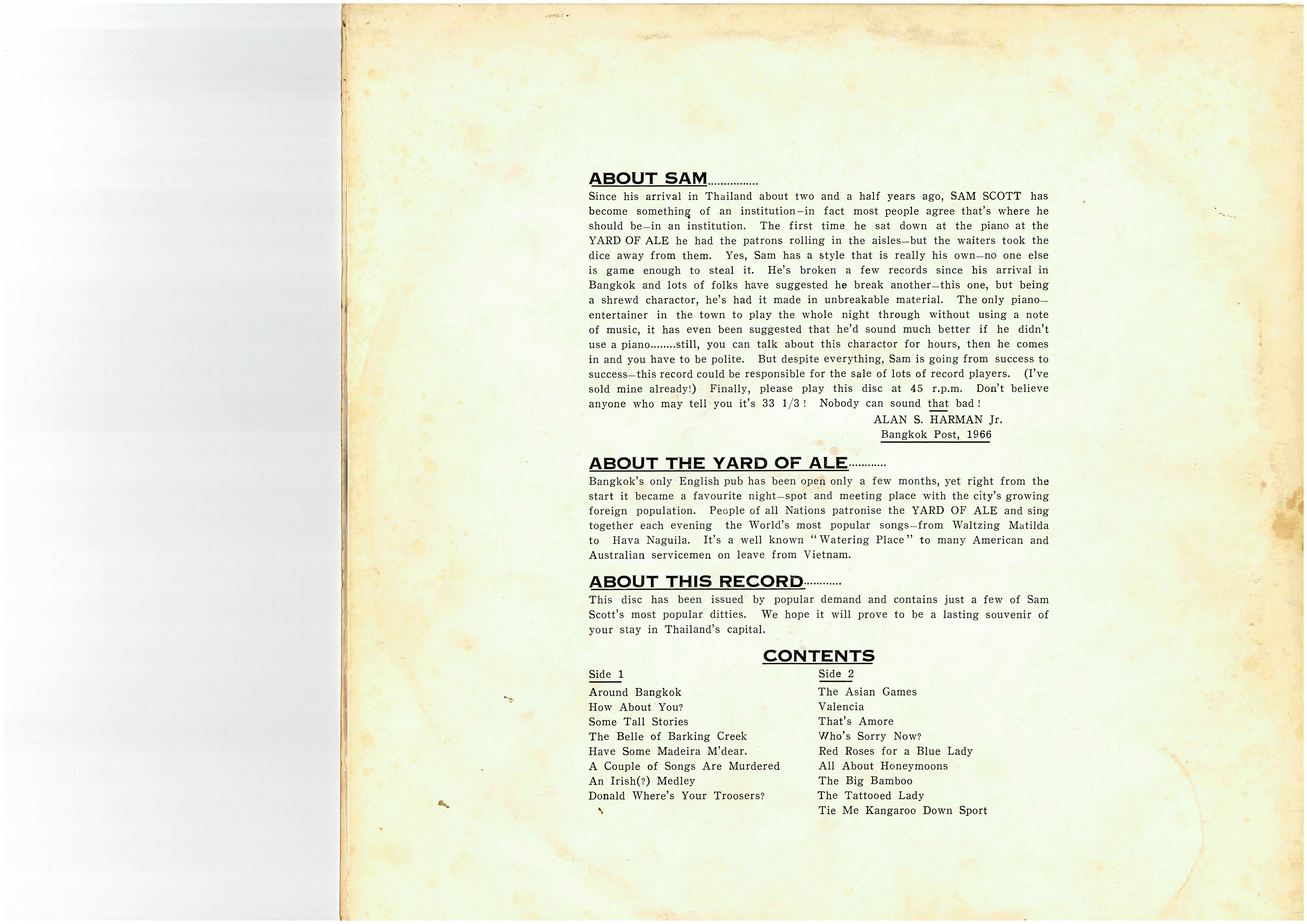 This was probably recorded by Jim Davison from Thai Radio, on a Nagra III, and pressed in Hong Kong. From some of the references listed, this would have been made in 1965 or 1966 (shortly before the Asian Games).