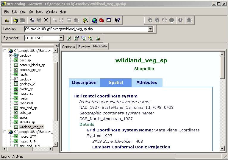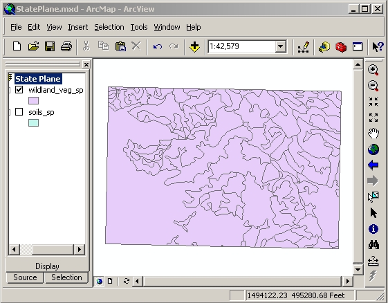 at the vegetation layer with ArcCatalog to check that it is in the State