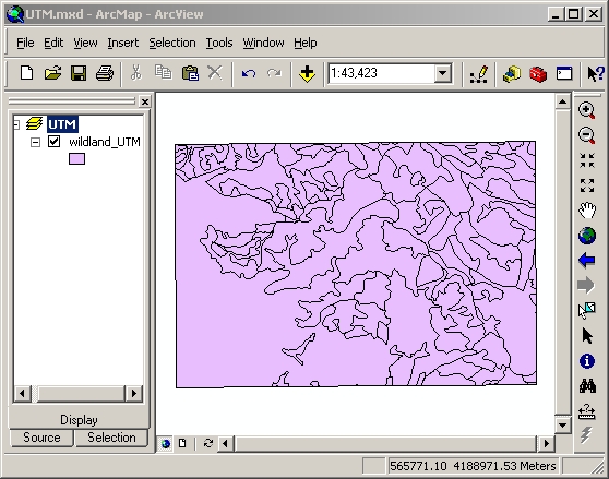 coordinates in a new shapefile. Let's re-project this layer into Universal