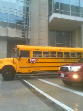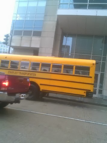 We were driving to an SCA event in DC, and I drove by a school bus, and saw this.